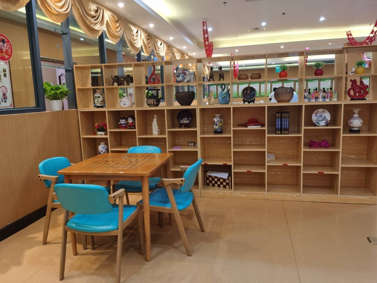 智能化配置是东坝福寿苑的一大亮点,每间客房均配备PM2.5新风系统,时刻净化室内空气,保障长者呼吸健康;智能床垫可实时监测长者身体状态,搭配应急呼叫系统和24小时热水循环系统,全方位守护长者居住安全。温湿度监测设备实时调控室内环境,独立卫生间与液晶数字电视则提升了居住的舒适度与便捷性。公共区域打造了500平米休闲娱乐广场,书法绘画区、阅览室为喜爱静思的长者提供空间,自动麻将机、乒乓球桌、台球桌则满足了活泼长者的社交需求,专业康复健身器材在护理团队的指导下,助力长者恢复身体机能。